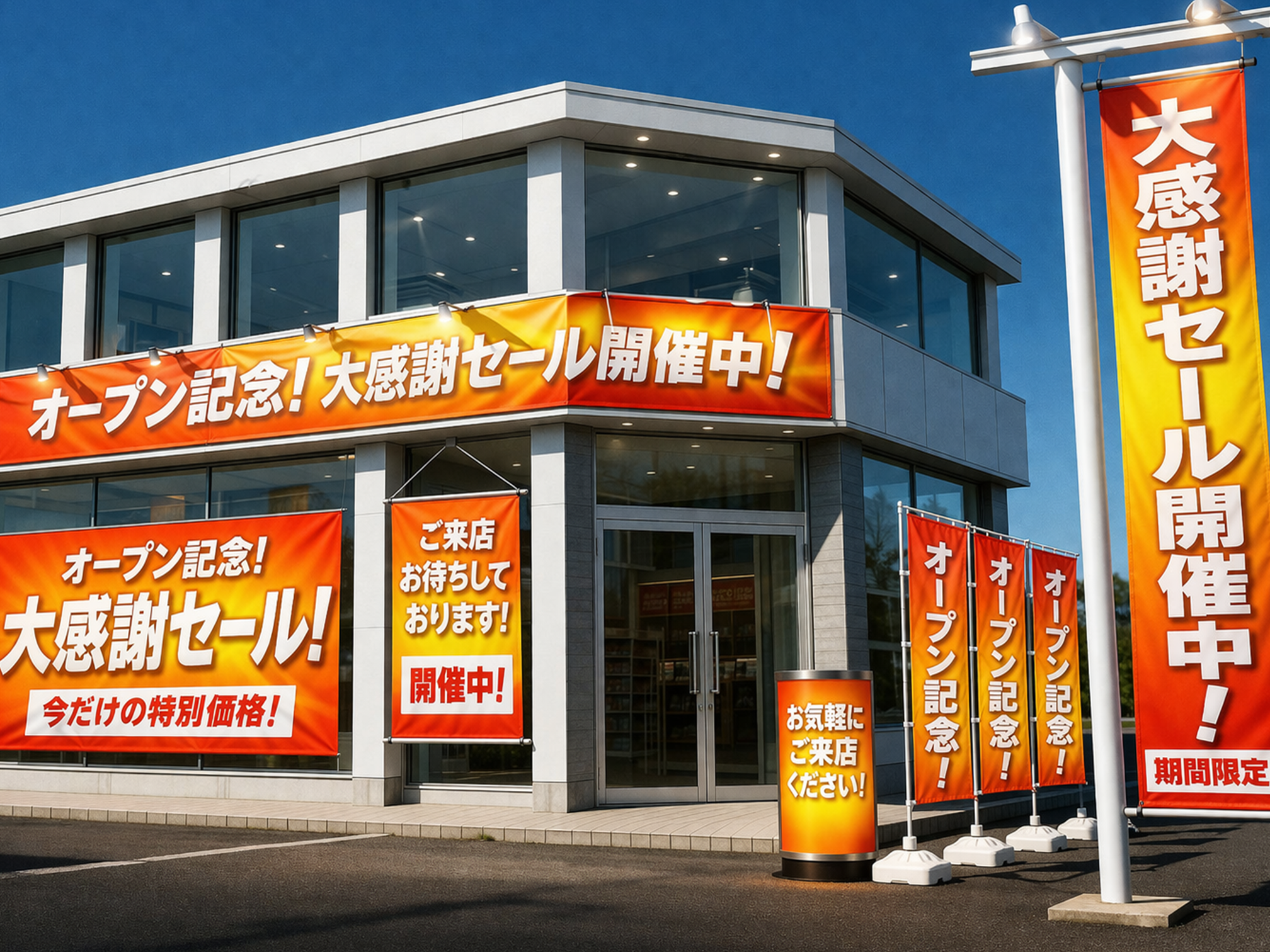 懸垂幕やのぼりなどの販促物、着ぐるみや装飾品などの特殊アイテムの企画・製作・施工もお任せください。